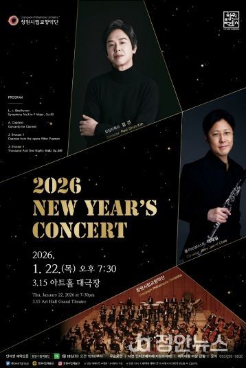 정안뉴스 김재홍 기자 | 창원시립교향악단은 2026년 병오년 새해를 맞아 희망과 감동의 메시지를 전하는 '2026 신년음악회(NEW YEAR’S CONCERT)'를 오는 1월 22일 오후 7시 30분, 3·15아트센터 대극장에서 개최한다.