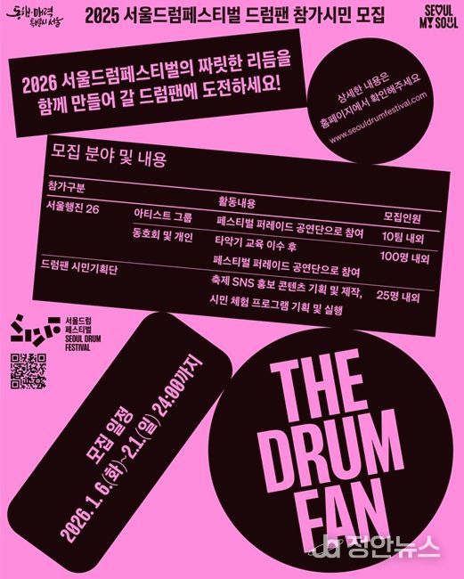 정안뉴스 안정주 기자 | 서울시는 오는 5월 동대문디자인플라자(DDP)에서 개최되는 ‘2026 서울드럼페스티벌’을 앞두고 축제의 주인공으로 활약할 ‘드럼팬(Drum Fan)’ 시민 참여자를 2월 1일까지 모집한다. 올해 축제는 단순 관람을 넘어 시민이 직접 기획하고 참여하는 ‘시민 주도형’ 축제가 될 것으로 기대된다.