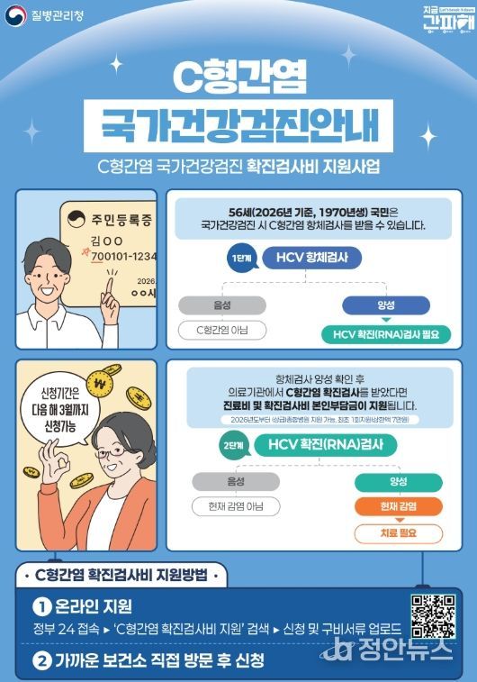 C형간염 확진 검사비 지원사업은 국가건강검진에서 C형간염 항체 양성으로 확인된 56세를 대상으로 확진 검사에 필요한 비용을 지원하는 제도다.
