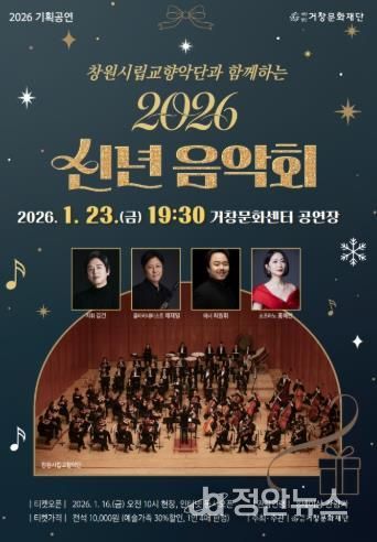 정안뉴스 김재홍 기자 | (재)거창문화재단은 오는 23일 19시 30분에 거창문화센터 공연장에서 창원시립교향악단과 함께하는 새해맞이 ‘2026 신년음악회’를 개최한다.