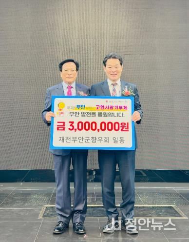 권익현 부안군수는 “향우회 이취임식이라는 뜻깊은 자리에서 고향사랑기부로 마음을 모아주신 재전부안군향우회 회원들께 깊이 감사드린다”며 “기부금은 군민이 체감할 수 있는 복지·환경·지역 활성화 사업에 소중히 활용하겠다”고 고마움을 전했다.