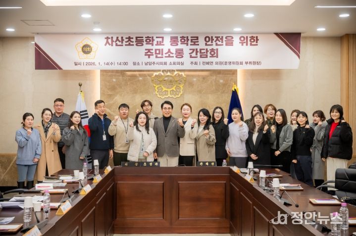 정안뉴스 안정주 기자 | 남양주시의회는 14일 시의회 소회의실에서 차산초등학교 통학로 안전을 위한 주민소통 간담회를 개최했다.