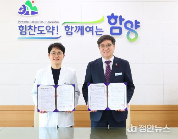 정안뉴스 김재홍 기자 | 함양군은 1월 14일 오후 군수실에서 한마음연합의원(병원장 이동수)과 ‘장기요양 재택의료센터 시범사업’ 추진을 위한 업무협약을 체결했다.