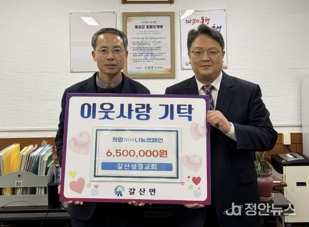 정안뉴스 황도연 기자 | 홍성군은 갈산성결교회가 지난 15일, 저소득 희귀난치성질환 가구를 지원하기 위해 성금 650만 원을 기탁했다고 밝혔다.