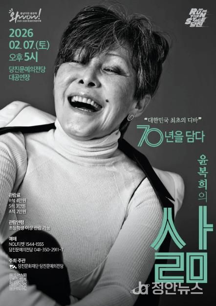 당진문예의전당이 2026년 RUN THE STAGE 당진! 이라는 새로운 시즌명과 함께 기획공연별 브랜드인‘LEGEND RUN’의 첫 무대로 대한민국 대중음악과 뮤지컬 역사를 상징하는 아티스트 윤복희 공연을 선보인다.