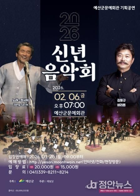 정안뉴스 황도연 기자 | 예산군은 군민과 함께 희망찬 2026년 새해를 여는 ‘2026년 신년 음악회’를 오는 2월 6일 오후 7시 예산군문예회관 공연장에서 개최한다고 밝혔다.