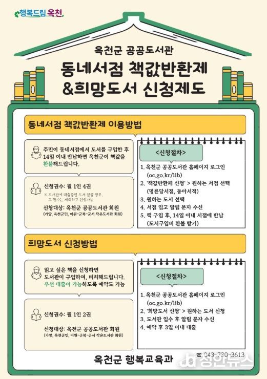 구입 후 14일 이내 서점에 도서를 반납하면 책값이 환불되며, 반납된 도서는 옥천군 공공도서관 소장도서로 등록된다.