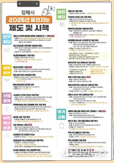 김해시 관계자는 “2026년은 일상에서 변화를 직접 피부로 느낄 수 있는 한 해가 될 것”이라며 “준비한 정책들이 시민의 행복과 직결될 수 있도록 세심하게 챙기겠다”고 밝혔다.