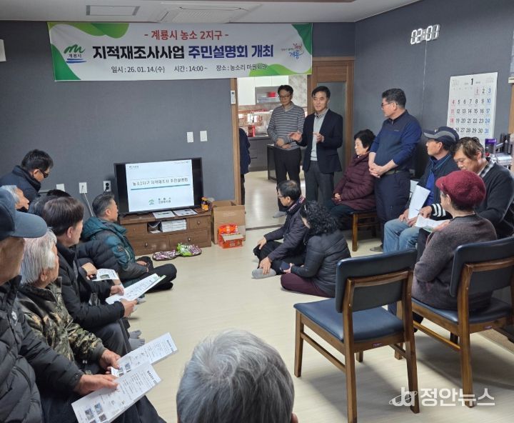 정안뉴스 황도연 기자 | 충남 계룡시는 2026년도 지적재조사사업 실시계획에 따른 사업지구 지정을 위해 지난 14일과 16일 농소2지구와 광석2지구 토지소유자 및 이해 관계인들을 대상으로 주민설명회를 개최했다.