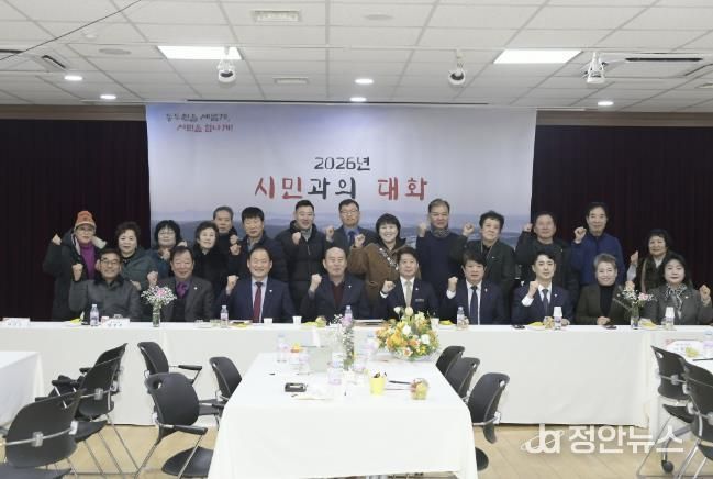 정안뉴스 안정주 기자 | 상패동 행정복지센터는 2026년 1월 14일, 박형덕 동두천시장을 비롯해 시·도의원, 지역 사회단체장 및 주민 등 50여 명이 참석한 가운데 ‘2026년 시민과의 대화’를 개최했다.