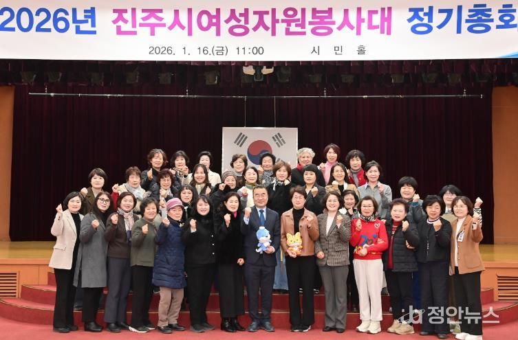 정안뉴스 김재홍 기자 | 진주시여성자원봉사대는 16일 오전 시청 시민홀에서 ‘2026년 정기총회’를 개최했다.