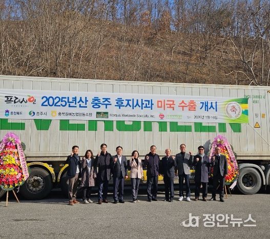 정안뉴스 황은경 기자 | 충주시는 충북원예농협 충주거점산지유통센터를 통해 충주사과를 미국으로 수출하는 선적식을 16일 개최했다.