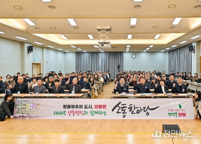 정안뉴스 안정주 기자 | 양평군은 16일 ‘2026년 군민과 함께하는 소통한마당’의 아홉 번째 일정으로, 양평군에서 가장 넓은 면적을 자랑하며 군의 극동에 위치한 ‘명품 부추의 도시’ 양동면을 방문해 면민들과 소통의 시간을 가졌다.