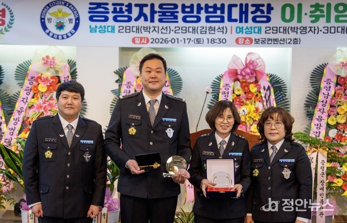 정안뉴스 황은경 기자 | 충북 증평군자율방범대장 이·취임식이 17일 보궁컨벤션에서 열렸다.
