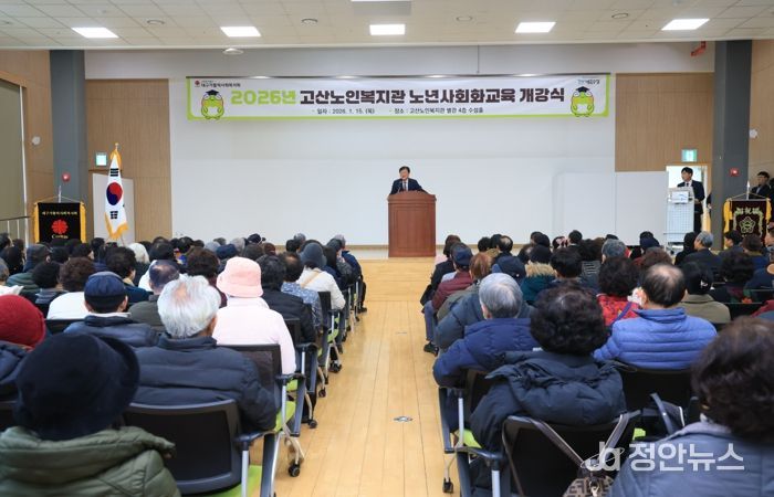 정안뉴스 안정주 기자 | 대구 수성구 고산노인복지관은 지난 15일 복지관 별관 4층 수성홀에서 ‘2026년 노년사회화교육 개강식’을 개최했다.