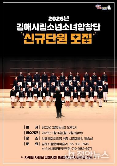 정안뉴스 김재홍 기자 | 김해시는 2026년부터 활동할 김해시립소년소녀합창단의 신입 단원을 모집한다고 19일 밝혔다.