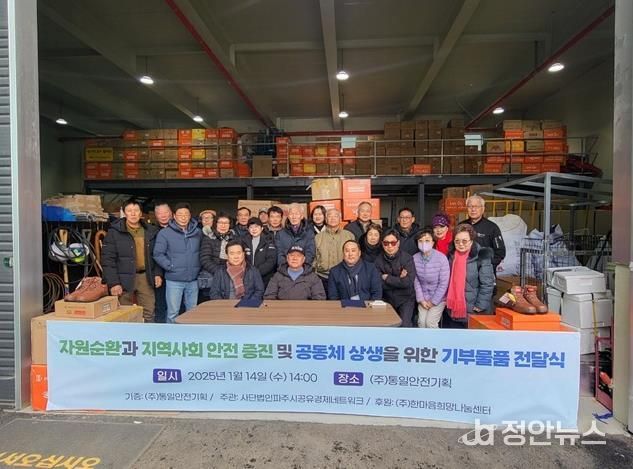 정안뉴스 안정주 기자 | 파주시는 지난 14일, 사회적기업 ㈜통일안전기획이 기부한 안전화 3,000켤레를 ㈔파주시공유경제네트워크가 지역 수요에 맞춰 배분하는 전달식을 진행했다고 밝혔다.