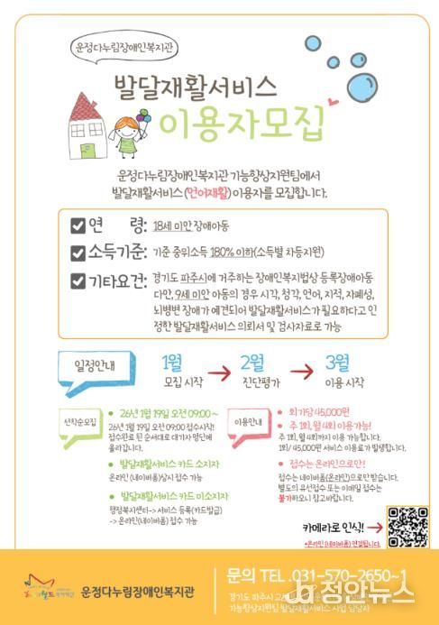 정안뉴스 안정주 기자 | 파주시는 운정다누림장애인복지관을 통해 발달지연 및 장애로 언어재활치료가 필요한 아동을 위한 ‘발달재활서비스(언어재활)’를 지원한다고 밝혔다.