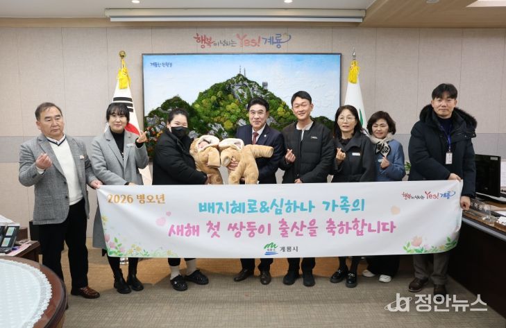 이를 기념하기 위해 계룡시는 19일 시청 집무실에서 ‘2026년 새해둥이 탄생 이벤트’를 열었다.