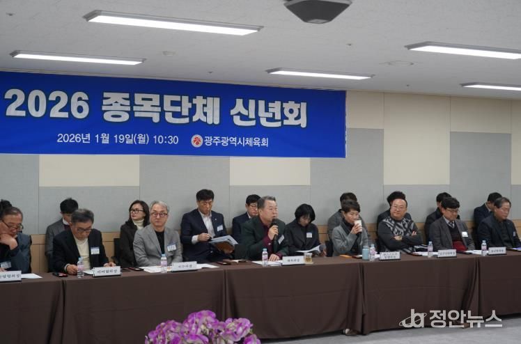 정안뉴스 안정주 기자 | 광주광역시체육회는 1월 19일 체육회관 2층 중회의실에서 종목단체 회장, 임직원 등이 참석한 가운데'2026 종목단체 신년회'를 개최했다.