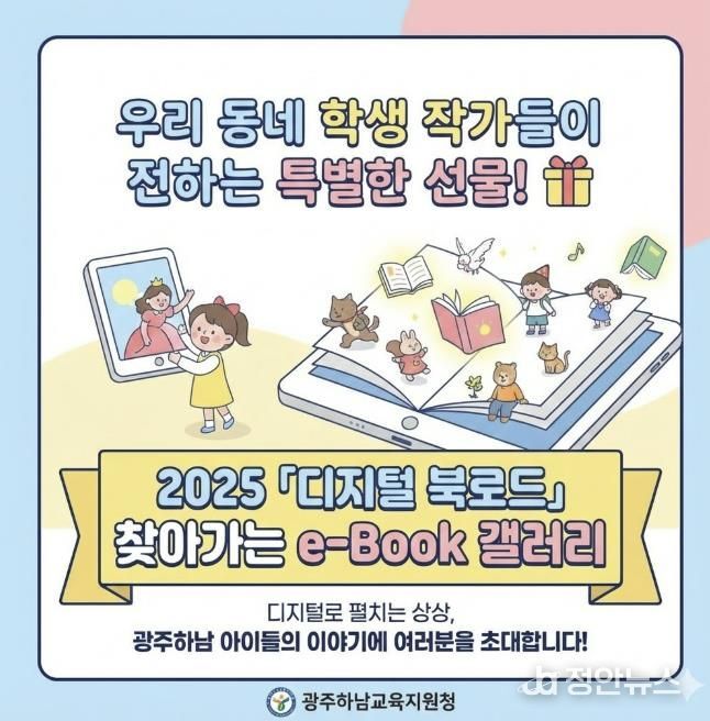 정안뉴스 안정주 기자 | 광주하남교육지원청은 1월 12일부터 2월 20일까지 관내 공공도서관 5개 기관을 순회하며 학생 주도 디지털 창작물 전시회인 '찾아가는 e-Book 갤러리'를 운영한다.