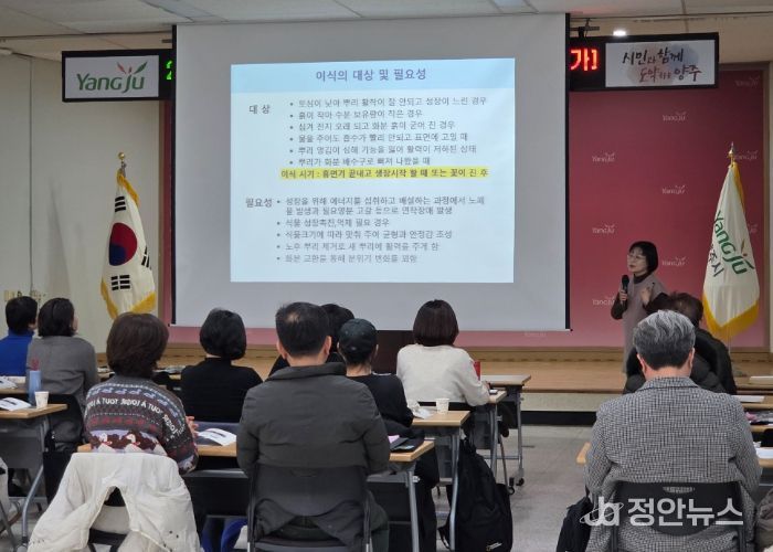 정안뉴스 안정주 기자 | 양주시가 지난 16일 농업기술센터 내 교육장에서 도시농업 활성화와 전문 인력 양성을 위한 ‘도시텃밭전문가 교육’을 개최했다.