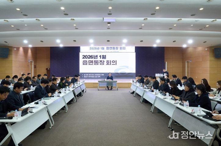 정안뉴스 황도연 기자 | 천안시는 19일 시청 대회의실에서 31개 읍면동장이 참석한 가운데 ‘병오년 첫 읍면동장 회의’를 열고 시정 현안을 점검했다.