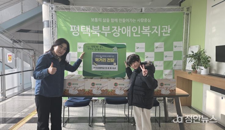 정안뉴스 안정주 기자 | 평택북부장애인복지관은 1월 16일 14시, 이충동 반지초등학교 오윤호 학생으로부터 먹거리(두유 20박스)를 후원받았다.