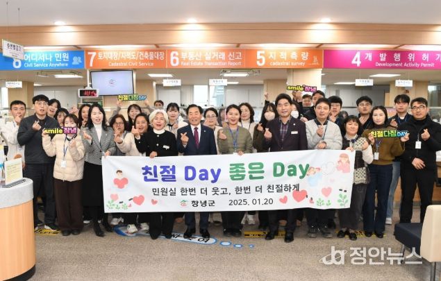 정안뉴스 김재홍 기자 | 창녕군은 1월 20일 민원봉사과 전 직원을 대상으로 ‘친절․청렴 다짐 데이’를 실시하고 군민에게 신뢰받는 행정서비스 제공을 위한 친절 실천 의지를 재확인했다.