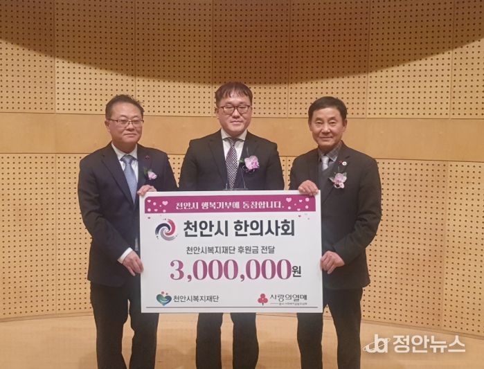 정안뉴스 황도연 기자 | (재)천안시복지재단은 지난 19일 천안시한의사회가 제72회 정기총회를 열고 취약계층을 위한 후원금 300만 원을 기탁했다고 밝혔다.