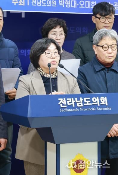 진보당 오미화(영광2)·박형대(장흥1) 의원과 전농 광주전남연맹은 함께 지난 1월 19일, 도의회 브리핑룸에서 기자회견을 열고 최근 빠르게 진행되는 전남-광주 행정통합과 관련해 “정부가 통합의 실익을 제시한 만큼 이제는 농어촌 주민들이 체감할 수 있는 대책을 분명히 해야 할 시점”이라고 강조했다.