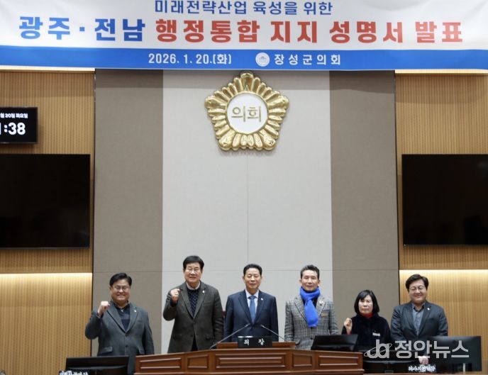 장성군의회는 성명서를 통해“행정통합은 국가균형발전을 위한 초광역 경제권 형성과 신산업 연계를 가능하게 하는 시대적 선택으로 재정규모 확대를 통한 실질적 자치권 강화를 위해 필요하다”며, “지방소멸과 수도권 일극체제 심화에 대응하기 위해 광주·전남 행정통합을 적극 지지한다”고 밝혔다.