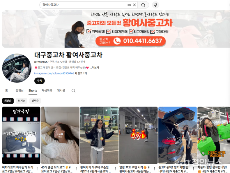 대구에서 신뢰를 쌓는 유튜버, ‘황여사중고차’