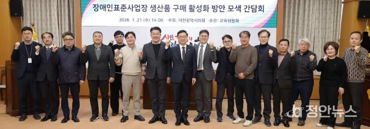정안뉴스 안정주 기자 | 대전시의회는 21일 시의회 3층 소통실에서 '장애인표준사업장 생산품 구매 활성화 방안 모색 간담회'를 개최하고, 공공기관의 장애인표준사업장 생산품 구매율을 높이기 위한 정책적·제도적 개선 방안을 논의했다.