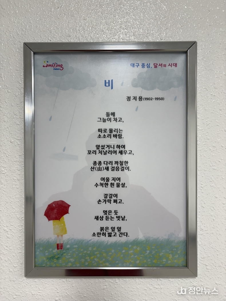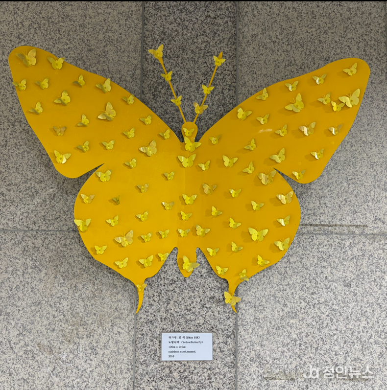 인사를 마친 뒤 엘리베이터를 타기 전, 김 입후보예정자는 구청 내부에 전시된 문학과 미술 작품에 발길을 멈췄다. 그는 과거에 배웠던 정지용 시인의 시 ‘비’가 눈에 띄어 반가운 마음으로 사진을 찍었고, 이어 2층 대회의실 앞에 전시된 신식 작가의 작품 ‘노랑나비’도 카메라에 담았다.