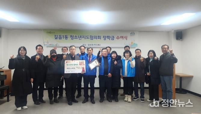 정안뉴스 안정주 기자 | 서울 성북구 길음1동 청소년지도협의회가 지난 20일 관내 청소년을 대상으로 장학금 전달식을 진행했다.