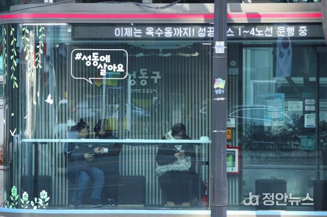 정안뉴스 안정주 기자 | 서울 성동구는 ‘성동형 스마트쉼터’ 겨울철 이용자 수가 100만 명을 돌파하며, 강추위에도 따뜻하고 안전하게 쉴 수 있는 생활밀착형 대표 한파 저감 시설로 자리매김하고 있다고 밝혔다.