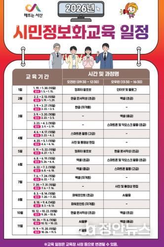 정안뉴스 황도연 기자 | 서산시는 시민들의 디지털 역량 강화를 위해 2026년 1월부터 11월까지 ‘시민정보화교육’을 연중 운영한다.