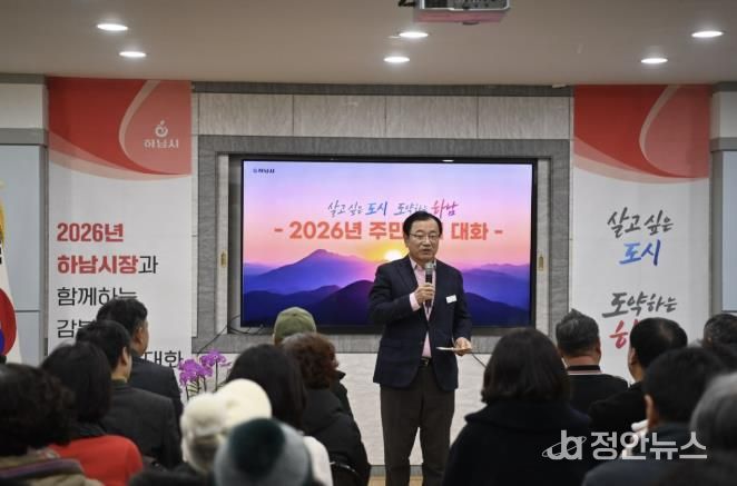 정안뉴스 안정주 기자 | 이현재 하남시장은 22일 신장2동 행정복지센터에서 열린 ‘신장2동 주민과의 대화’에서 “환경평가 등급 규제로 멈춰 섰던 창우동 H2 부지 개발사업을 그린벨트 해제 지침 개정을 통해 본격적으로 재개한다”라고 밝혔다.