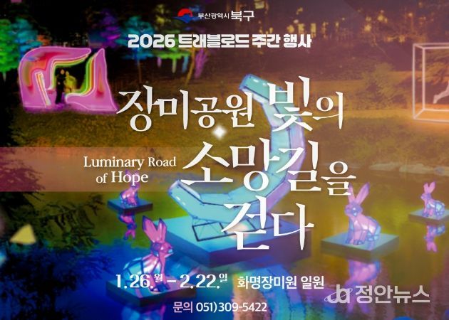 정안뉴스 황정혜 기자 | 부산 북구는 1월 26일부터 2월 22일까지 화명동 장미공원 일원에서 ‘장미공원, 빛의 소망길을 걷다–북구 트래블로드 주간 행사’를 개최한다고 밝혔다.