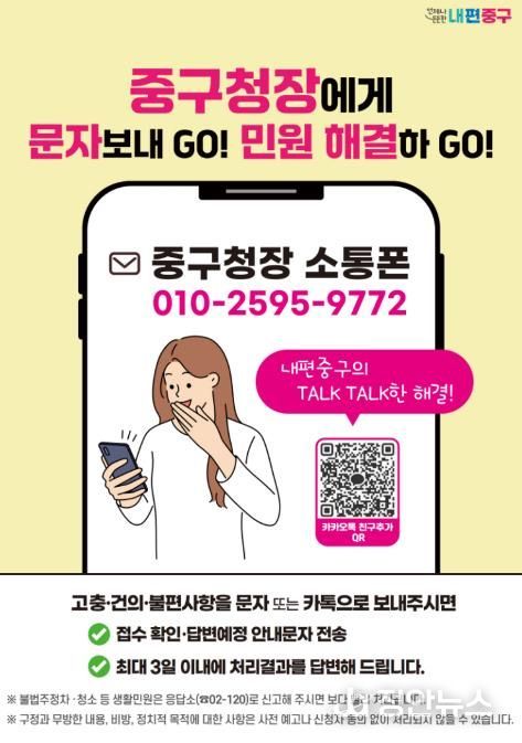 김길성 중구청장은 "구청장 소통폰은 주민 일상과 행정을 가장 빠르고 간편하게 잇는 연결선"이라며 "민원은 한 번 해결하면 끝이라는 안일함에서 벗어나 능동적인 소통으로 주민 일상을 언제나 챙기는 내편중구를 실현하겠다"고 말했다.