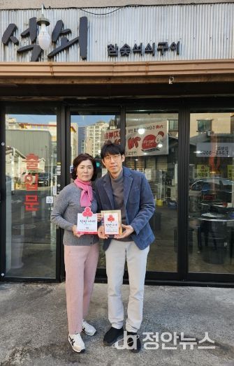정안뉴스 김재홍 기자 | (재)김해시복지재단(대표이사 임주택) 김해시청소년수련관(관장 이현동)은 지난 23일(금) 김해시 진영읍에 위치한 석쇠에 방문해 착한가게 현판 전달식을 진행했다.