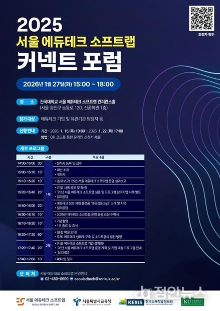 정안뉴스 안정주 기자 | 서울특별시교육청은 1월 27일 AI·디지털 기반 교육환경 지원 방안 모색을 위한‘서울 에듀테크 소프트랩 커넥트 포럼’을 개최한다.