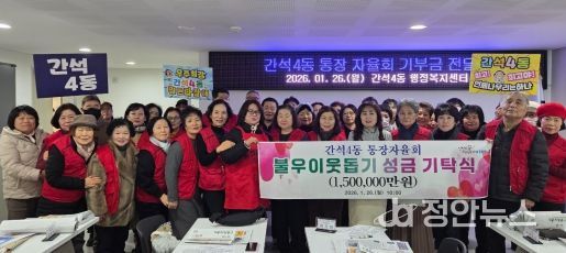 정안뉴스 안정주 기자 | 인천 남동구 간석4동 행정복지센터는 최근 통장자율회로부터 공동체 활동을 통해 마련된 수익금을 기탁받았다고 27일 전했다.