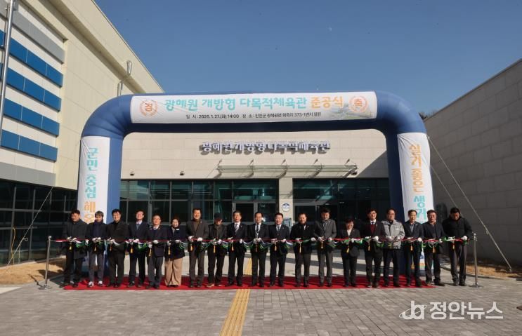 정안뉴스 황은경 기자 | 충북 진천군은 27일 광혜원면 광혜원리 373-1번지 일원에서 ‘광혜원 개방형 다목적체육관’의 준공식을 개최했다.