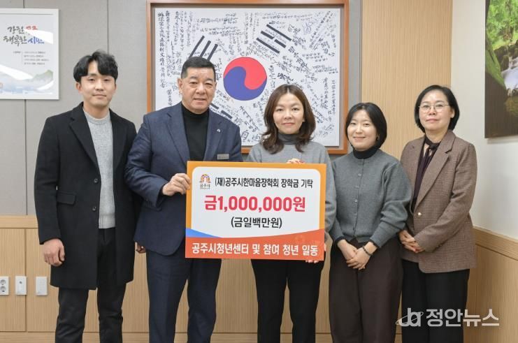 정안뉴스 황도연 기자 | 공주시청년센터는 지역 청년들이 뜻을 모아 지난 28일 (재)공주시한마음장학회에 지역사회 나눔을 위한 장학금 100만 원을 기탁했다고 밝혔다.