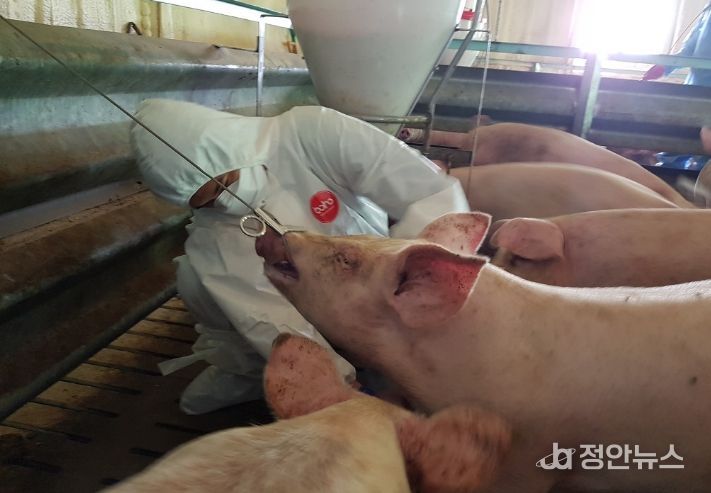 넷째, 아프리카돼지열병 감염 의심축을 조기에 색출하기 위해 1월 30일부터 2월 13일까지 2주 동안 도축장으로 출하되는 도내 전 양돈농가를 대상으로 정밀검사를 벌인다.