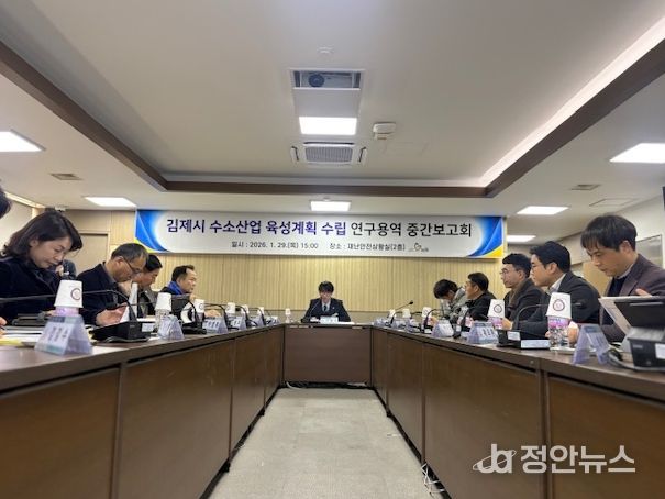 시는 지난 29일 김제시청 재난안전상황실에서 이현서 부시장 주재로 관련 공무원, 수소·에너지 분야 전문가, 유관기관 관계자 등 18명이 참석한 가운데 ‘김제시 수소산업 육성계획 수립 연구용역’중간보고회를 개최했다.