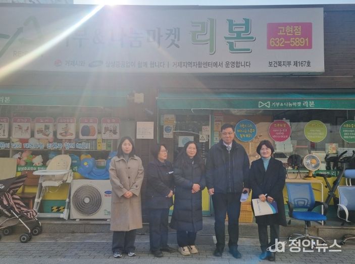정안뉴스 김재홍 기자 | 민기식 부시장은 지난 29일 자활기업 기부나눔마켓 리본을 방문해 매장운영 상황을 살피고 관계자들과 현장의 의견을 나눴다.
