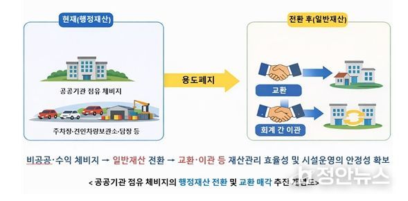 일반재산으로 전환한 8필지를 포함해 경찰청, 소방서, 교육청 등이 공공목적으로 사용 중인 체비지 총 121필지에 대해서는 점유기관별 여건을 고려해 ‘협의를 통한 교환’ 또는 ‘회계 간 유상이관’ 방식 등으로 정비한다.